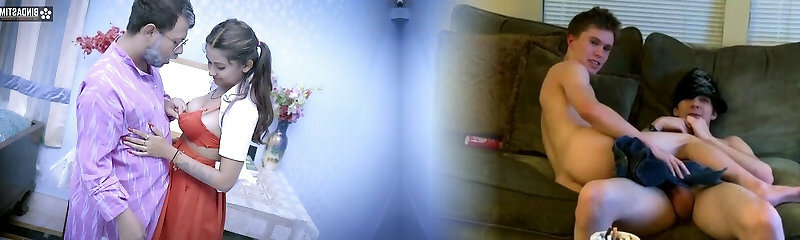 The housemaid was fucked by her boss's son until cum shot in twat