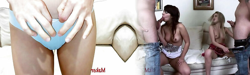 Busty gals down blouse and camel toe.