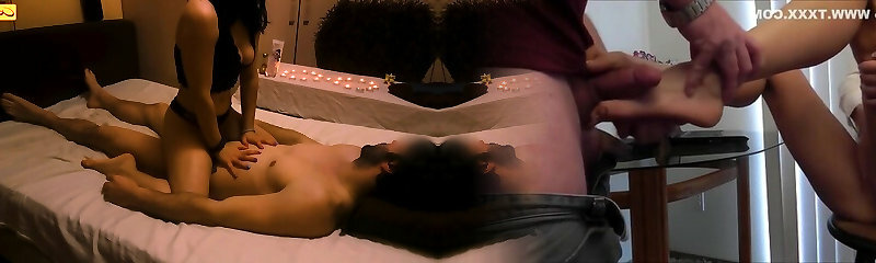 Sexual massage next to her hubby: Madam, if you make a sound, we will find out.