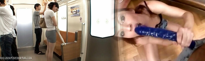 Asian slut sucks on two hard cocks in a subway