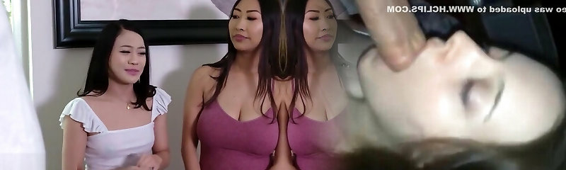 Busty blonde and Asian chick massage