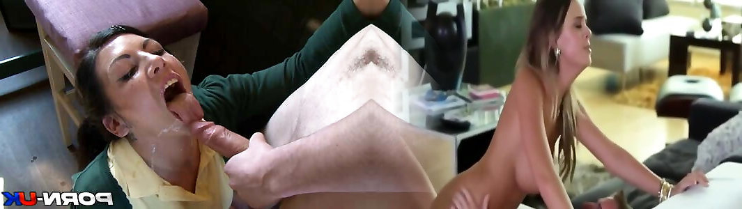 Brit huge breast lesbians gagging on a ample strap-on