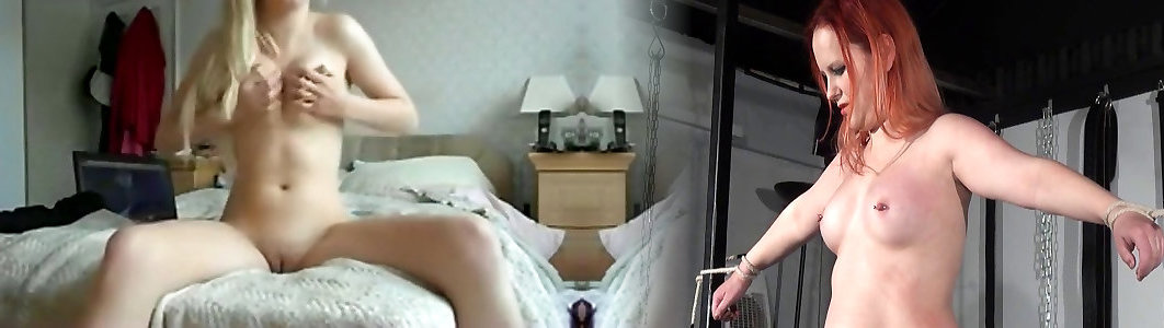 Sizzling towheaded nymph plays with her jugs and cameltoe cootchie for her boyfriend on webcam