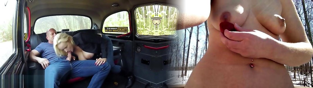 Nymph Fake Taxi Busty bootylicious spraying platinum-blonde driver creampied by passenger