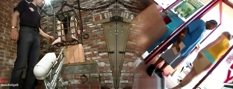 Chained victim caned and spanked in the tied up gangbang anal creampie space