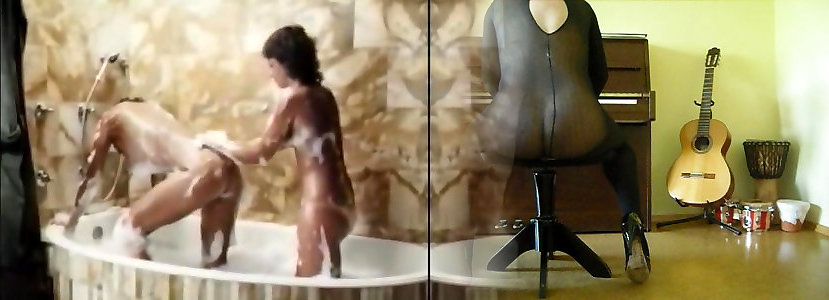 Horny lesbian milf in nylon stockings long young penis high heels masturbates at the office