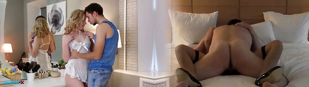 Russian nubile Isabel Stern is making love with her Bf in front of the mirror