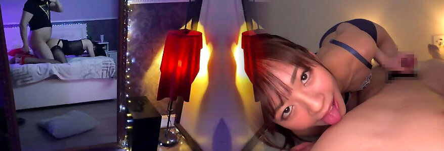 Blowjob in front of mirror