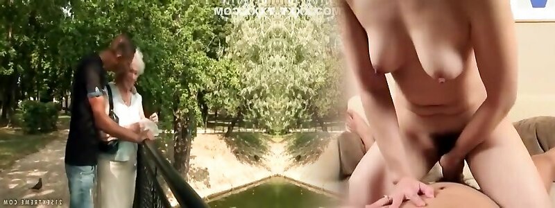 Nasty granny issue mom blows rock hard trunk of a crazy dude after smooching