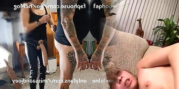Femdom MILF anal pegging a chastity DILF