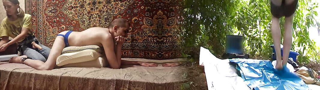 Innocent petite girl makes his ass explode. Close-up pegging