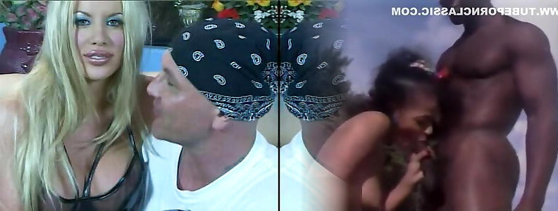 Fellow screws plastic DD towheaded from behind while 2nd guy romps her facehole