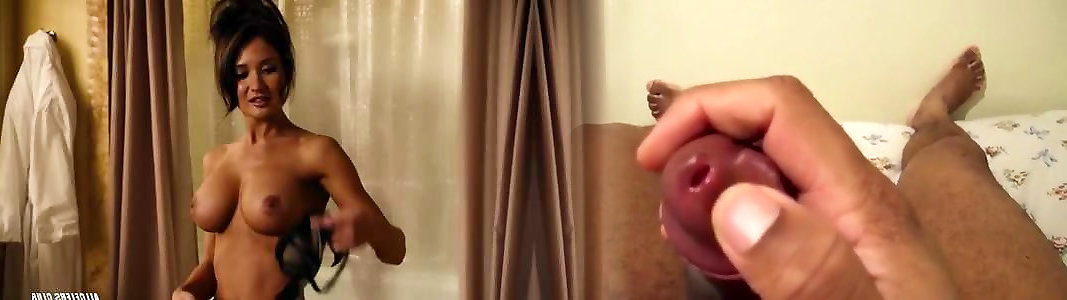jizzing su jessica jensen & 039;s petite hooters dopo un manicotto bang