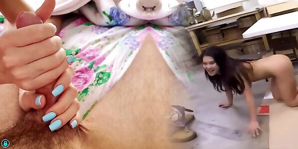vero passo-sorella dà masturbazione con la mano per timido passo-fratello e ottiene più pop-shot in tutto il suo avambracci