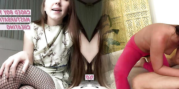 la castità slave preso in giro e negato da domme in maglione bianco