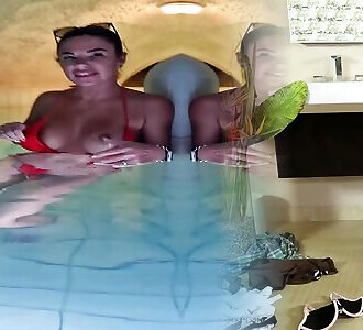 super hot chesty milf in costume da bagno unclothing allaperto