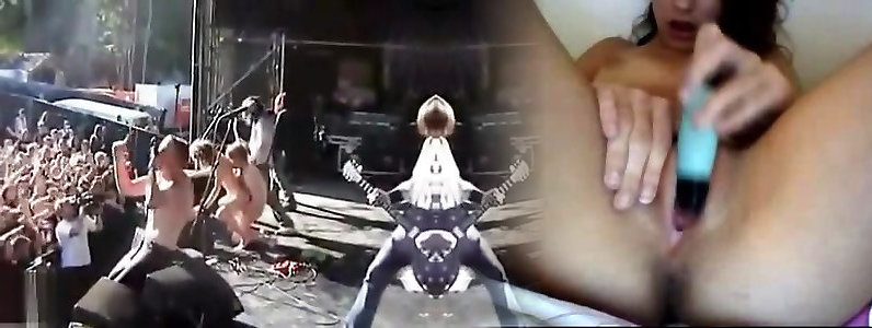 hippies si accoppiano sul palco di un concerto rock