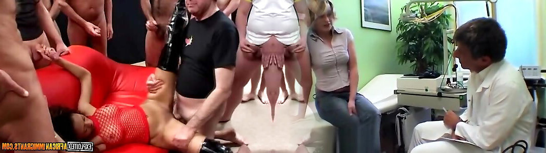donna africana circondata in antico tedesco cockfest bukkake