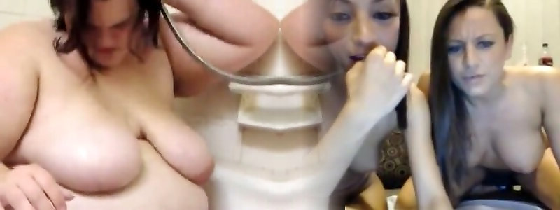 paffuto bbw dai capelli scuri fa oscillare la sua pancia e tette: trio