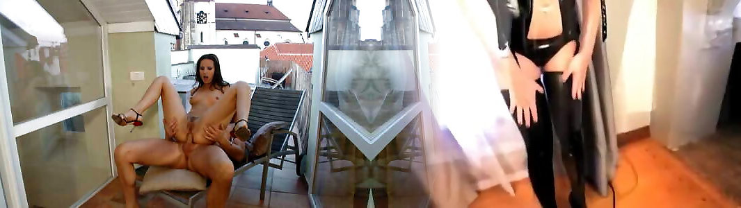 ragazza dai capelli scuri ama il caldo fuckfest sul balcone