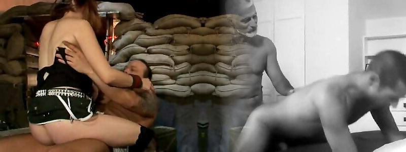 vecchio finto soldato avendo fuckfest con un adolescente in un bunker